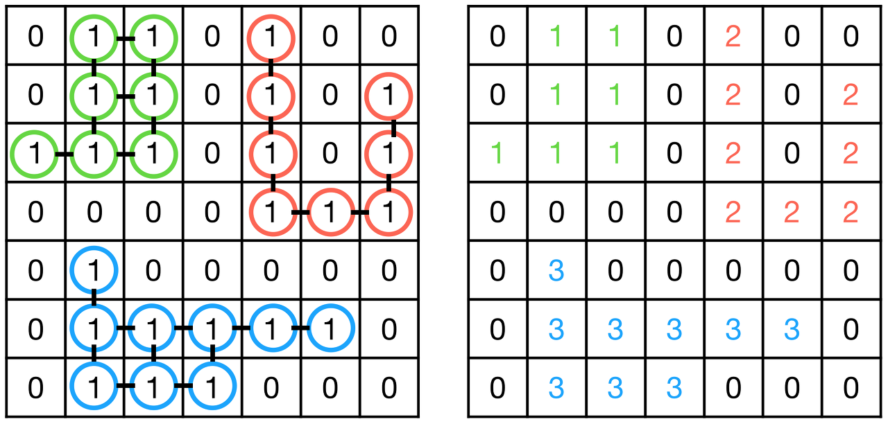- 이 문제는 (x, y)형태로 값이 주어지지만, 이 값들을 그래프로 보면 연결요소의 개수를 구하는 것과 같다.