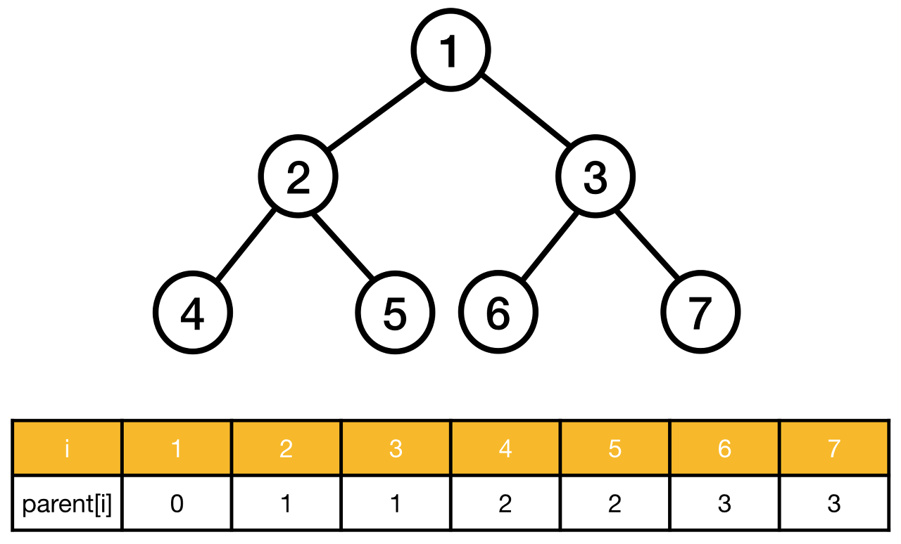 ex) 1은 2, 3의 부모, 2는 4, 5의 부모, 3은 6, 7의 부모