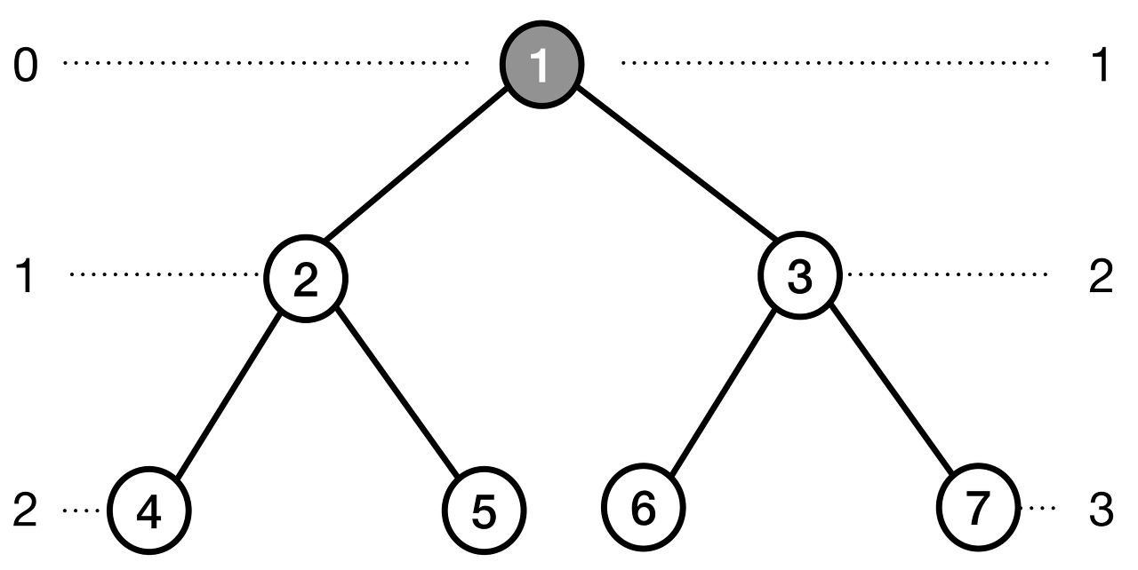 - 루트에서 부터의 거리(루트의 깊이를 0으로 하는 경우는 0 1 2,,,가 되고 1로 하는 경우는 1 2 3 ,,,이 됨)