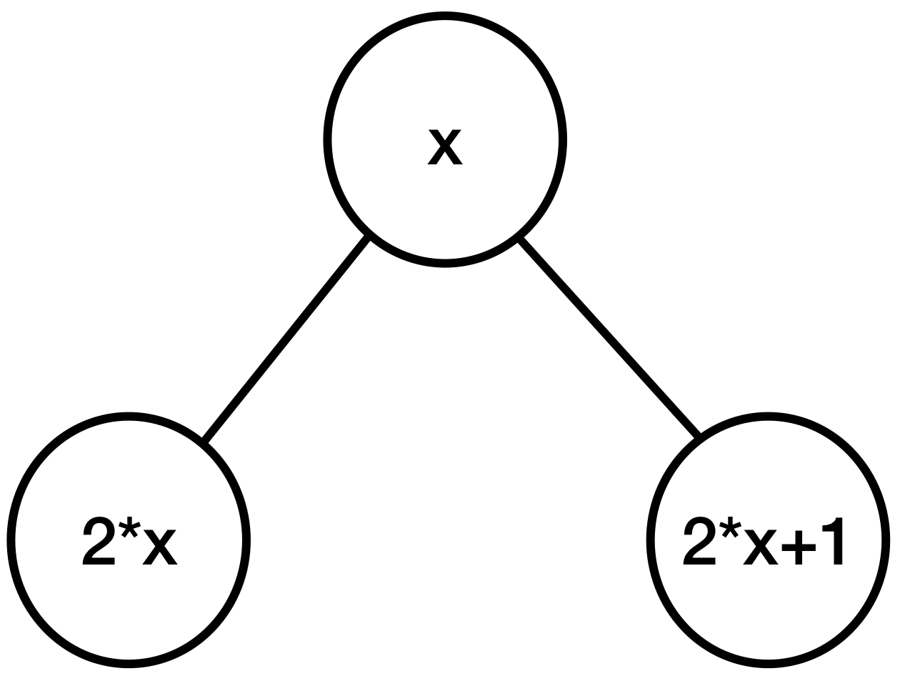 arr[x], arr[2*x], arr[2*x+1]에 저장하면 되는데, 이 방식은 왼쪽 자식 없이 오른쪽 자식만 쭉 있는 경우
